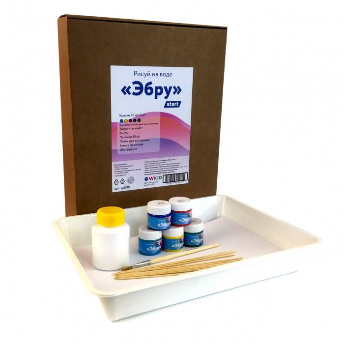 "Эбру start" — это упрощенный набор для новичков. Он отлично подойдет для тех, кто только собирается познакомиться с этой удивительной техникой рисования невероятных картин на воде. А при желании может стать отличным подарком для тех, кто чувствует в себе творческий потенциал.