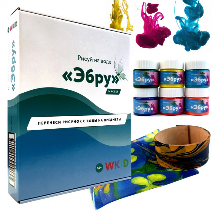 Набор "Эбру мастер" - самый расширенный по комплектации набор из серии. В него входит все необходимое для создания рисунков на воде, а так же перенесения их на изделия из кожи, дерева и ткани.