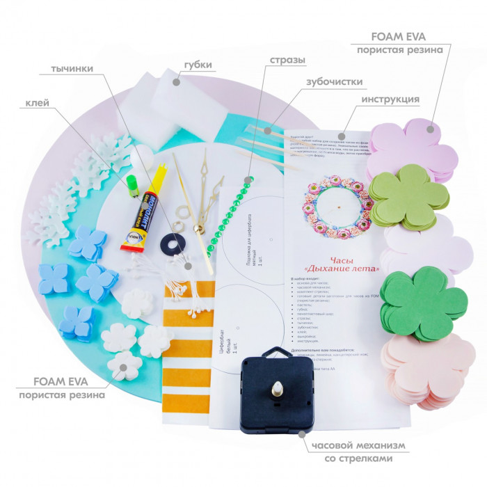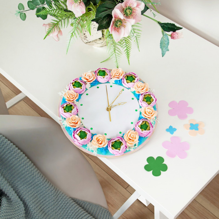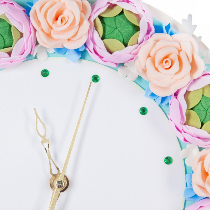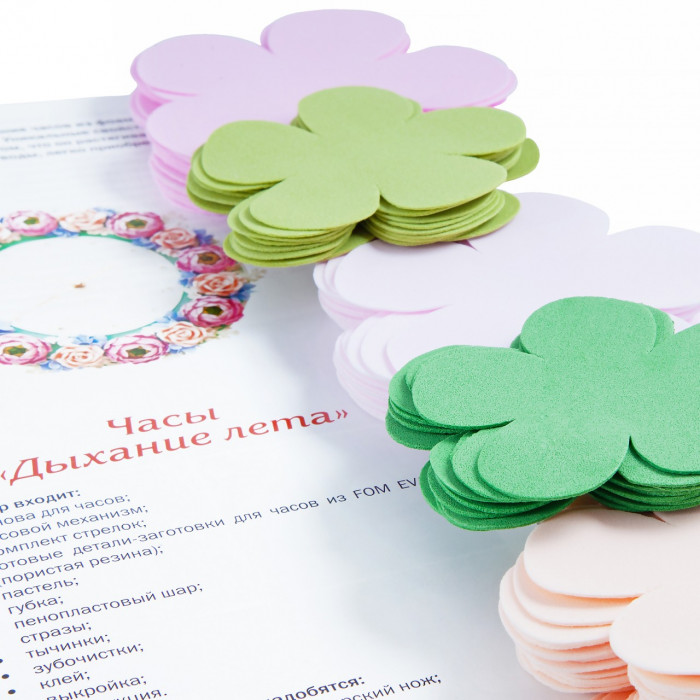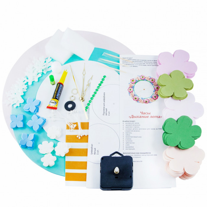 Вам предлагается создать креативный аксессуар для украшения интерьера - часы из фоамирана. Такая поделка не только поможет развить творческие способности ребенка, но и послужит наглядным пособием для изучения времени.