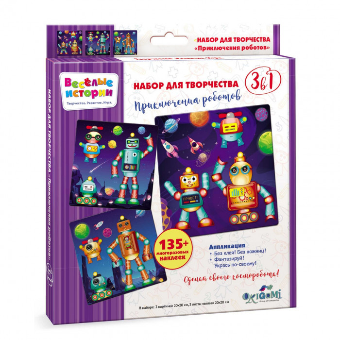 Набор для творчества "Приключения роботов" перенесет вашего малыша в галактические дали, где его друзья-роботы играют среди разноцветных планет!