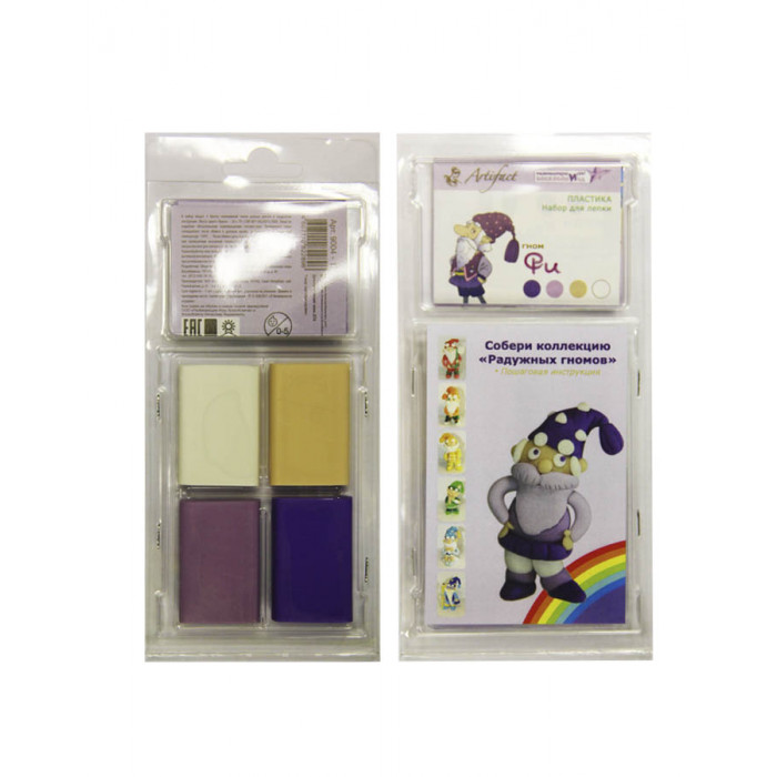 В комплекте 4 разноцветных бруска полимерной глины (по 20 г) и цветная пошаговая инструкция.