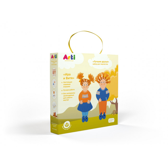Развивающие наборы для детского творчества "Лучшие друзья" из серии "Игрушка своими руками" от компании "Арти" предлагают возможность работы с уникальной плоской глиняной игрушкой ручной лепки. Играть с маленькими фигурками мальчиков и девочек очень занимательно и нравится детям. Девиз "Создай себе друга!" прекрасно подходит к этим наборам для творчества. Используя качественные акриловые краски, яркие шерстяные нити и атласные ленточки, ребенок создаст неповторимую игрушку, а благодаря подробной цветной инструкции, качественной кисточке и деревянной палочке, входящим в набор, работа превратится в удовольствие!