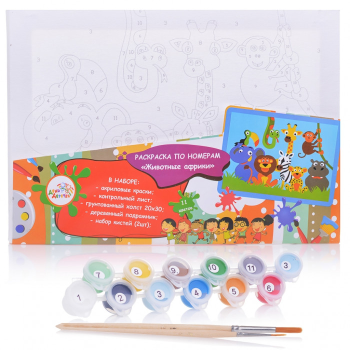 Комплект для юных художников содержит все необходимое, чтобы создать полноценную картину. Детали на картинке и баночки пронумерованы. Ребенок просто возьмет в руки краску с номером, разрисует ею соответствующую часть картинки, и так, шаг за шагом, картинка готова! Легко, просто и полезно — уже скоро малыш будет без страха и опасений красиво и аккуратно разрисовывать другие картинки.