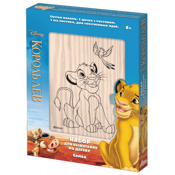 Набор досок для выжигания "Симба" был создан по мотивам популярного полнометражного мультфильма "Король Лев" компании "Уолт Дисней".