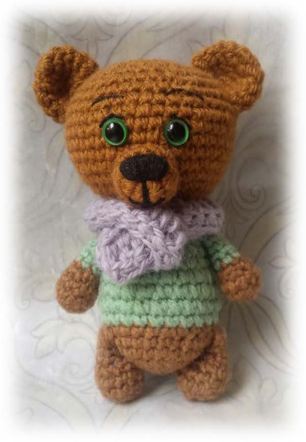 Одежда Медвежонка-сына перекликается по цветовой гамме с маминой. У медвежонка снимается шарфик.
