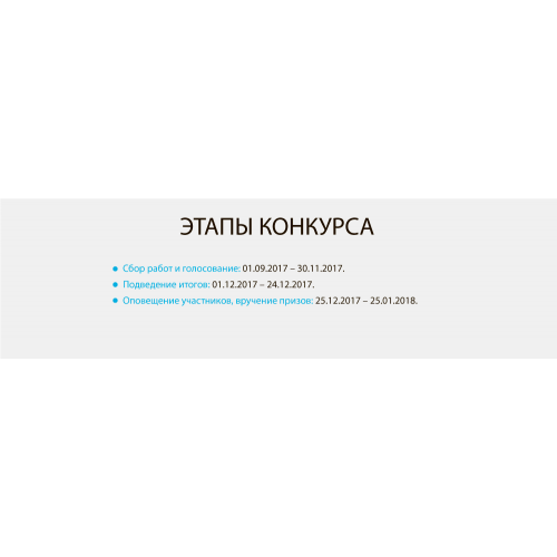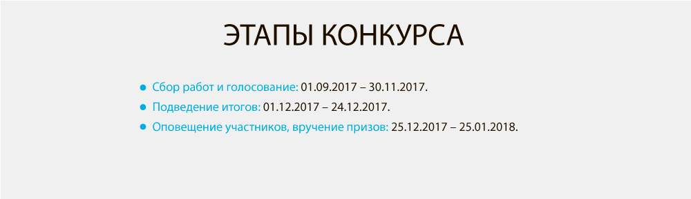 - Сбор работ и голосование: 01.09.2017 – 30.11.2017.
