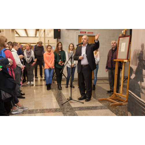 На открытии выставки присутствовало множество гостей. Особым гостем стал Иван Сергеевич Баграмян – внук легендарного маршала Ивана Христофоровича Баграмяна. Почетный гость рассказал собравшимся о своем прославленном предке: «Мой дед, Иван Христофорович, пользовался большим авторитетом у нашей советской молодежи. Его называли не иначе как «Наш комсомольский маршал». И была за что: Иван Христофорович вел большую молодежную работу, помогал воспитывать детей в духе патриотизма. Сегодняшняя выставка «У мужества возраста нет…» помогает сохранять связь между поколениями, которая была нарушена в тяжелые 90-е, перебрасывает мостик между детьми времен Великой Отечественной и современными. Это очень важно».