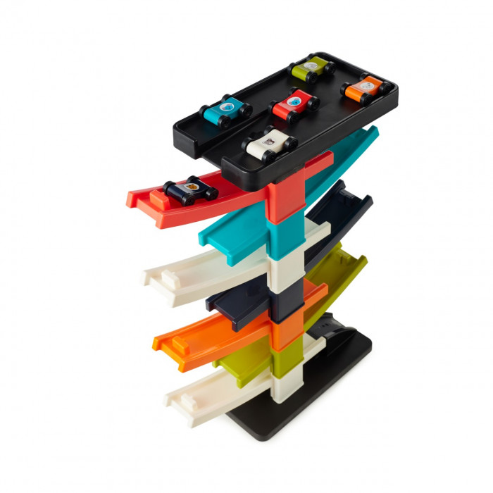 Наблюдение за движением развивает зрительное восприятие, познавательный интерес, повышает концентрацию внимания, зрительно-моторную координацию. Игра с маленькими машинками тренирует мелкую моторику. Разноцветная трасса позволяет выучить новые цвета. Наблюдение за многоуровневым треком развивает пространственное мышление.